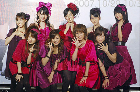 中新網(wǎng)10月31日電 據(jù)臺(tái)灣《中國(guó)時(shí)報(bào)》報(bào)道,日本偶像團(tuán)體“早安少女組”為宣傳成軍十年精選集,二十九日抵達(dá)臺(tái)灣展開(kāi)造勢(shì)活動(dòng)。圖為早安少女組三十日于記者會(huì)上正式亮相。