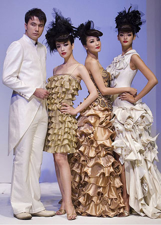 中新網(wǎng)11月8日電 據(jù)臺(tái)灣《中國(guó)時(shí)報(bào)》報(bào)道,臺(tái)灣服裝設(shè)計(jì)師潘宜良的時(shí)裝作品七日在北京時(shí)尚周展示,臺(tái)灣名模黃志瑋(由左至右)、蔡淑臻、陳思璇與林嘉綺跨海登臺(tái)走秀,展現(xiàn)臺(tái)灣在時(shí)尚產(chǎn)業(yè)中的魅力。