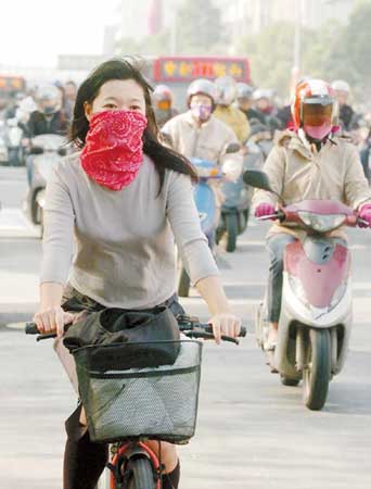 沙塵暴三日侵襲臺灣,各地懸浮微粒濃度明顯增加,北部地區(qū)空氣質(zhì)量達(dá)到不良情形,懸浮微粒濃度以嘉義樸子和臺南安南飆高超過每立方米三百五十微克為最高。為“抵抗”沙塵暴,外出上班的民眾用頭巾包住口、鼻。臺灣《中國時報》圖 劉宗龍 攝