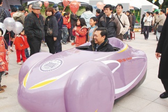 國際燃料電池車觀摩會昨天在自然科學(xué)博物館舉辦,臺中市長胡志強(qiáng)當(dāng)場允諾明年將于水湳機(jī)場舉辦國際氫能車大賽,屆時將由明道大學(xué)規(guī)劃、市府全力支持;讓明道校長汪大永感動地說:“這真是最好的禮物”。