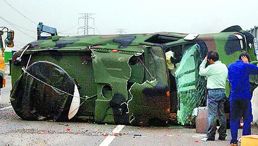資電作戰(zhàn)指揮部表示,這輛車十月二十六日到位于桃園的“中科院”進(jìn)行年度定期保養(yǎng),昨自返回中部駐地時(shí),行經(jīng)南下彰化路段時(shí),疑因左后輪刺到尖銳物爆胎翻車,所幸駕駛兵及隨車的士官長(zhǎng)毫發(fā)未傷。不過,士官長(zhǎng)陳俊典見記者采訪時(shí),猛擋記者鏡頭并拿相機(jī)反搜證指稱:“這是通訊車恐怕會(huì)有外泄問題,希望不要拍攝!”