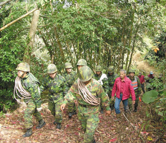 軍方和警義消昨天動員700人力兵分六路,搜尋嘉義縣大埔鄉(xiāng)的農(nóng)義農(nóng)場與開元農(nóng)場、高雄縣那瑪夏鄉(xiāng)的二溪山、表湖與卓武山、飛機最后雷達光點消失位置的老人溪十四號橋。空軍也出動十一架次直升機貼地搜尋,可惜一無所獲。