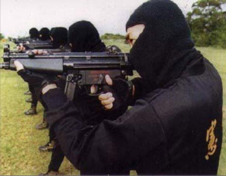 俗稱“黑衣部隊(duì)”的海軍陸戰(zhàn)隊(duì)特勤隊(duì),隊(duì)徽是一把劍及閃電,黑底紅邊,象征快、狠、準(zhǔn)的行動(dòng)作風(fēng),雖然一九八○年即已成立,但直到一九九五年華興演習(xí)時(shí)才首度亮相,至今仍是三大特勤隊(duì)最神秘的一支。