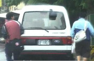 兩位民眾從便利店提了一大袋東西出來(lái),外型方方的像飲料,兩人都穿運(yùn)動(dòng)服,其中一個(gè)還著短褲一派輕松的樣子,接著上了車(chē),不過(guò),這一看仔細(xì)可不得了,這車(chē)的側(cè)面有岸巡總隊(duì)的徽章,還有個(gè)紅十字,說(shuō)明這是臺(tái)軍用救護(hù)車(chē),卻被岸巡員在不是執(zhí)勤時(shí)穿便服拿來(lái)代步買(mǎi)飲料。