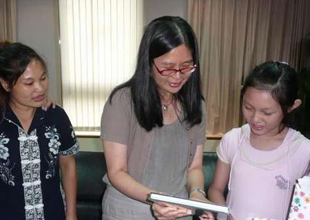 “我告訴兒子,這是賴‘主委’,是你的恩人,你要跪下磕頭!碑(dāng)日,劉姓和鄭姓兩名大陸配偶各自帶著兒子和女兒到“陸委會”拜會賴幸媛,劉小姐一見到賴幸媛,就要兒子下跪道謝,自己也跟著下跪。因?yàn)閯、鄭兩人兒女,之前受限于法律?guī)定不能來臺,直到臺當(dāng)局有關(guān)部門修改法規(guī)后才得以順利來臺團(tuán)聚。