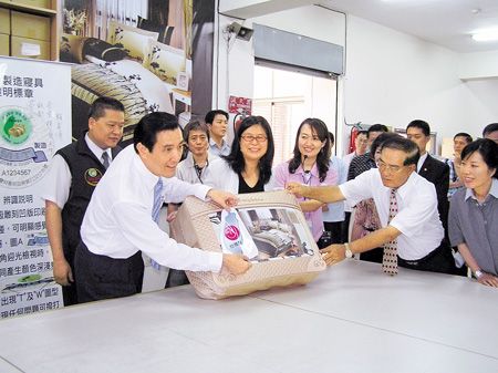 昨天上午,馬英九在“陸委會”主委賴幸媛的陪同下,到臺南市安平工業(yè)區(qū)參觀傳統(tǒng)產(chǎn)業(yè)億進寢具公司,馬英九、賴幸媛等官員參觀寢具的制造過程中,馬英九還親自踩縫紉機、燙棉被,感受傳產(chǎn)勞工的辛苦后,隨即和來自各縣市的四十五位傳統(tǒng)業(yè)者代表座談。