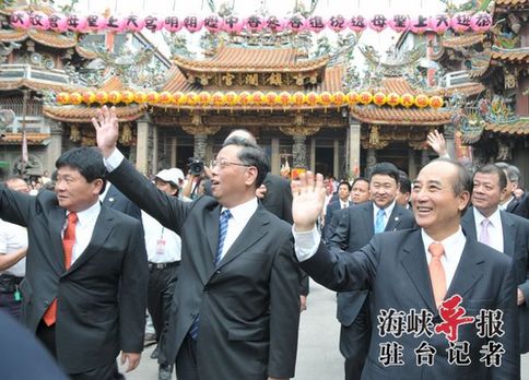 6日,福建省經(jīng)貿文化交流團臺灣之行第二天。交流團的重頭戲,一是與合作伙伴做生意,加強兩岸經(jīng)貿合作,二是到臺中縣大甲鎮(zhèn)瀾宮拜謁媽祖、上香祈福。