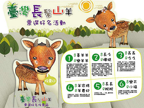 據(jù)介紹,臺北市立動物園會從6月1日起,在梅花鹿與長鬃山羊展場前,設(shè)1個月的“最后命名票選活動”,動物園也為游客準(zhǔn)備精美投票折頁,除了投下神圣一票,只要動動手,就可以將折頁上的可愛梅花鹿與長鬃山羊,變成立體卡片帶回家收藏。