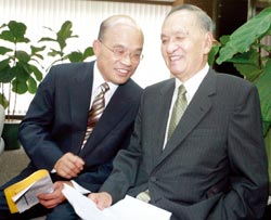 彭明敏說,當(dāng)時(shí)在警總監(jiān)控下,他秘密求助日本“獨(dú)盟”成員宗像隆辛,并透過與自己外表相似的日本人阿部賢一,雙方約定在臺(tái)北“交換身分”。為求行動(dòng)成功,彭明敏不只拿變造過的阿部賢一護(hù)照,出境時(shí)還戴上黑色膠框眼鏡,并在人中黏上兩撇小胡須,搭上梳得閃亮的油頭,神似喜劇大師“卓別麟”,才終于瞞天過海,順利飛往瑞典取得政治庇護(hù)。