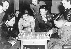 下棋不僅是蔣家生活的娛樂,蔣介石還以之作為外交聯(lián)誼活動。1947年7月至9月,蔣在牯嶺避暑期間,美國杜魯門總統(tǒng)特使馬歇爾(George Catlett Marshall)六上牯嶺,協(xié)商調(diào)處國共問題。馬氏夫婦受到蔣介石與夫人熱情款待,游覽風景名勝,也留下弈棋的記錄及畫面。蔣介石日記中多日載及。