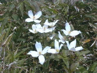 合歡山區(qū)最搶眼的花卉,非玉山山蓼莫屬,又稱“高山威靈仙”、“繡球藤”,四片白色花瓣要不注意到它都很難。玉山山蓼為多年生蔓性木質(zhì)藤本植物,喜愛(ài)陽(yáng)光,5-6月間白色花簇生于葉腋,花朵大而顯眼,常見(jiàn)于路旁灌叢。