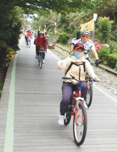 “體委會(huì)”運(yùn)動(dòng)設(shè)施處處長(zhǎng)胡啟邦說(shuō),臺(tái)東的自行車道規(guī)劃完善,以臺(tái)東山海鐵馬道為例,利用廢棄鐵道改成枕木自行車道,還串聯(lián)臺(tái)東市森林公園、海濱公園、利吉惡地等知名風(fēng)景區(qū),沿途山、海、河景及稻田盡收眼底!霸谂_(tái)東騎單車是件很舒服的事!”這也是“體委會(huì)”選擇在臺(tái)東舉辦研習(xí)的主因。
