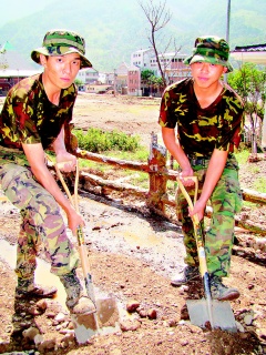 村民說,進(jìn)入桃源鄉(xiāng)救災(zāi)的臺(tái)軍都很年輕,“看到這群80后流汗付出,讓我們很感動(dòng)!睘楦兄x他們協(xié)助重建家園,炒野菜、殺山豬幫臺(tái)軍們加菜。