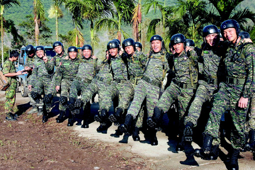 中新網(wǎng)8月25日電 據(jù)臺灣《聯(lián)合晚報(bào)》報(bào)道,救災(zāi)臺軍官兵傳出甲型流感疫情后,民間捐贈的防水透氣材質(zhì)特戰(zhàn)軍靴25日清晨起由直升機(jī)運(yùn)至第一線山區(qū)救災(zāi)部隊(duì)官兵手中,在馬英九巡視高雄縣那瑪夏鄉(xiāng)民族、民權(quán)、民生等村落前,執(zhí)行救災(zāi)任務(wù)的25名海軍陸戰(zhàn)隊(duì)官兵都趕忙換到新靴子。