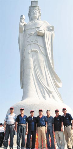 縣府文化局專員吳曉云說,縣府大力爭取當(dāng)局支持興建媽祖巨神像,并邀請“立法院長”王金平出任籌備會榮譽(yù)主委,今年6月動土興建,10月初完成高達(dá)28.8公尺的巨像,全部以花崗巖打造,是全世界最高的媽祖巨石神像,日前舉行開光儀式,25日于“媽祖升天祭”大典中正式揭幕。