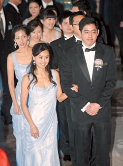 這場豪華婚禮不但手筆驚人,且今晚喜宴的主桌也令人矚目。不但有馬英九、李登輝等島內(nèi)重量級政治人物,還預(yù)期會有王家大媽、二媽、三媽同座,因此將意外呈現(xiàn)“臺灣大和諧”、“王家大團(tuán)圓”的好氣氛,主婚人王文洋開心地說,想快點當(dāng)爺爺。