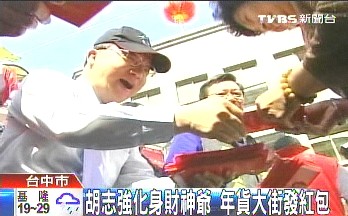 再過幾天就是農(nóng)歷春節(jié),臺(tái)中天津路年貨大街為了增加人氣,請(qǐng)胡志強(qiáng)發(fā)紅包,民眾大排長龍,不少小朋友領(lǐng)到市長紅包,嘴巴也變甜了,“祝市長新年快樂,年年有余,大吉大利!”還有一位阿伯為了見到胡志強(qiáng),連續(xù)3年都來領(lǐng)紅包。
