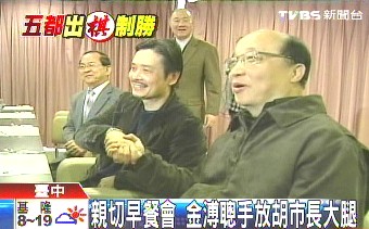 金溥聰邀胡志強(qiáng)吃早餐,過程中兩人互動(dòng)頻繁,但會(huì)不會(huì)有更親密關(guān)系,胡志強(qiáng)幽默帶過。胡志強(qiáng)說:“我還沒有到‘直轄市’的身份,如果爭取到競選然后當(dāng)選,說不定以后我也不想跟他十指相扣,還是找一個(gè)女生來好了!