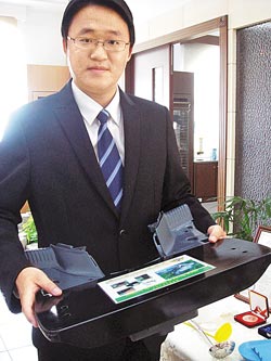 他的第一件發(fā)明作品“濾油功能盤”,為他贏得海外肯定,前年獲韓國首爾國際發(fā)明展金牌、去年獲得馬來西亞發(fā)明展銀牌。他笑說,一開始是因?yàn)橛^察媽媽煮菜,總會(huì)在菜盤下方墊湯匙,好讓菜汁流到盤子另一頭,他就發(fā)想何不讓盤子變聰明?于是發(fā)明改良一款傾斜式盤子,食物盛在高處,湯汁順勢(shì)流到低處,吃東西即可避免吃到“油水”。