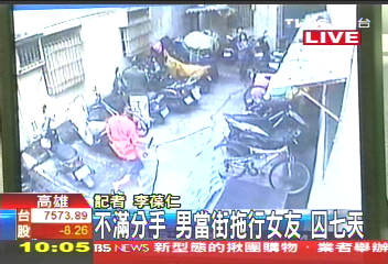 中新網(wǎng)6月24日電 據(jù)臺(tái)灣TVBS報(bào)道,高雄有一名男子,因?yàn)椴粷M同居女友打算帶著孩子要求分手,竟然持棍棒追打、拖行女友,過程全都被監(jiān)視器錄下。