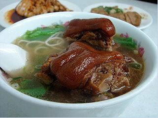 奢華一點(diǎn),就來(lái)碗牛肉面或是蹄花面吧!用上蹄所鹵出來(lái)的蹄花,軟嫩帶Q而且有咬勁,就是那彈牙的筋度讓人懷念,直接抓起來(lái)咬,最豪邁有滋味。然后把面跟湯慢慢飲盡吃光,飽足中體會(huì)面香的單純,真真確確是讓人懷念的眷村味。