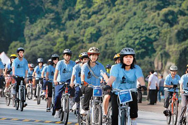 中新網(wǎng)4月22日電 據(jù)臺(tái)灣《中國(guó)時(shí)報(bào)》報(bào)道,臺(tái)北縣19所高中職校1000余名學(xué)生,參加縣府舉辦的“單車成年禮”活動(dòng),21日有520名學(xué)生挑戰(zhàn)成功,22日還有560名學(xué)生要挑戰(zhàn)90公里的單車旅程。