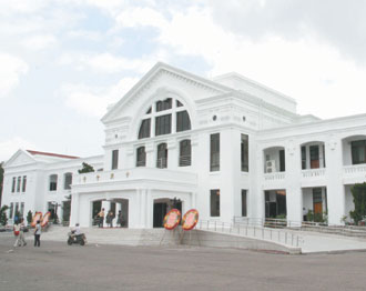中新網(wǎng)7月21日電 據(jù)臺(tái)灣《聯(lián)合報(bào)》報(bào)道,臺(tái)灣中興新村“中興會(huì)堂”是巴洛克式建筑,加上白色的外觀,有“小白宮”的美名,因年久失修,臺(tái)當(dāng)局“內(nèi)政部營建署”重新整修,20日完工啟用,讓不少員工重溫“小白宮”的風(fēng)采。
