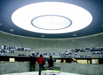 此外,藉由長毛地毯的設(shè)計,使得每位觀展民眾的足印可以烙印在長毛地毯上。隨著展覽主題的不同,特殊的展覽品展出時,如果參觀民眾多,長毛地毯上就會留下更多人的足印。黨徽與每天的展覽變化呈現(xiàn)微妙的強烈關(guān)系。