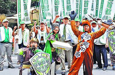 臺(tái)南市有300多名臺(tái)聯(lián)黨支持者欲北上嗆馬,卻因租不到游覽車,臺(tái)聯(lián)市議員參選人丘傭哲竟異想天開,昨與30名支持者分乘4艘舢舨,從曾文溪口闖關(guān)出海,打算循水路往北駛向淡水河。丘傭哲等人登船后,駛離不到100公尺,隨即被海巡人員攔下。(●環(huán)球時(shí)報(bào)報(bào)駐臺(tái)北特約記者 蕭師言 ●本報(bào)記者 吳 薇)