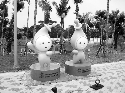此次吉祥物的設(shè)計概念是以高雄市“光和水”兩大主題作為靈感,“高妹”與“雄哥”頭部造型像個小水滴,頭上的小球吸收太陽能后,身體就會發(fā)光,此構(gòu)想概念是源自高雄世運會主場館特有的太陽能發(fā)電系統(tǒng)建筑設(shè)計,全球第一座使用太陽能的綠色建筑運動場館,傳達著對綠色能源、環(huán)境保護等議題的關(guān)心。(鄭固固攝)