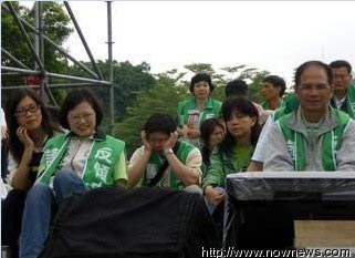 至于謝長廷,也因為精神不濟,先到后臺稍做休息,而靜坐舞臺上,僅剩黨主席蔡英文和游錫堃率領(lǐng)部分黨公職坐在臺上,聽著新聞關(guān)心時事。此外,現(xiàn)場也可發(fā)現(xiàn),部分“立委”因靜坐一宿,體力已超出負(fù)荷,紛紛在舞臺上打起瞌睡,有的人甚至悄悄地消失不見了。