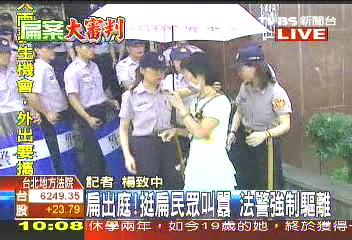 中新網(wǎng)6月16日電 據(jù)臺(tái)灣“今日新聞”報(bào)道,臺(tái)北地方法院16日上午開(kāi)庭審理陳水扁弊案,并傳喚陳水扁與馬永成等多人進(jìn)行對(duì)質(zhì),由于地方法院外有許多陳水扁支持者,由于旁聽(tīng)席只有20席引發(fā)扁迷不滿,甚至一名男子還進(jìn)入法庭大聲抗議,遭到審判長(zhǎng)蔡守訓(xùn)強(qiáng)制驅(qū)離,而這名扁迷的動(dòng)作甚至還一度讓陳水扁受驚。