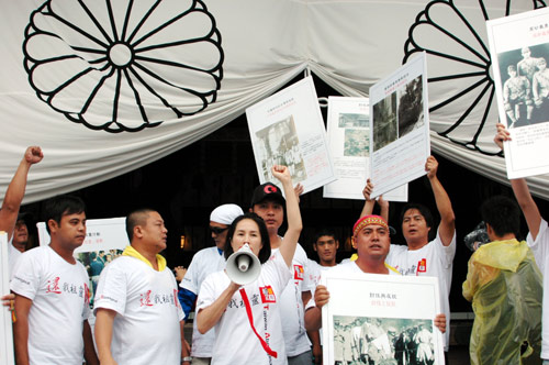 8月11日,高金素梅一行于上午9時(shí)30分左右搭車出其不意地抵達(dá)靖國神社,隨即高舉“要求靖國還我祖靈”等大型橫布條標(biāo)語,浩浩蕩蕩地列隊(duì)走向靖國神社的正殿,并高喊口號。靖國神社的警衛(wèi)人員前往阻擋,企圖奪走標(biāo)語布條,雙方發(fā)生肢體沖突。