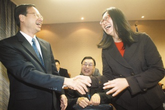中新網(wǎng)12月17日電 第四次兩岸兩會領(lǐng)導(dǎo)人商談即將登場,;鶗麻L江丙坤日前接受臺灣《聯(lián)合晚報》專訪。對于在野黨發(fā)動群眾抗議,江丙坤憂心表示,如果繼續(xù)內(nèi)耗下去,他擔(dān)心臺灣是否會變成菲律賓第二,他期待朝野坐下來,好好地談一談,大陸的崛起、全球化與全球暖化以及區(qū)域整合、韓國的競爭等議題。