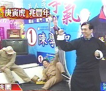 中新網(wǎng)2月21日電 據(jù)臺灣TVBS報道,國民黨“立委”參選人陳學(xué)圣自認(rèn)和香港影星甄子丹有幾分神似,他特別穿馬褂扮演功夫大師葉問,動手和助理比劃拳腳,雖然動作超慢,卻差點(diǎn)把自己的人形廣告牌“撂倒”。