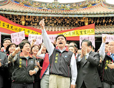 大批民眾拿著“臺北要‘郝’,不要‘蘇’”的標語,力挺郝龍斌,“凍蒜(當選)”聲不絕于耳,緊接著郝龍斌用閩南話演說,“我要向神明報告,過去三年誠心和認真為臺北市打拼,祈求神明保佑,讓我繼續(xù)為市民服務(wù)!