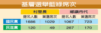 此外,對(duì)于基層選舉,民進(jìn)黨也有所斬獲,12日晚初步統(tǒng)計(jì)選舉結(jié)果,民進(jìn)黨村里長(zhǎng)部分由44席小幅成長(zhǎng)為49席,鄉(xiāng)鎮(zhèn)市民代表則由83席大幅成長(zhǎng)為170席。