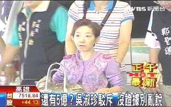 中新網(wǎng)6月28日電 據(jù)臺(tái)灣TVBS報(bào)道,有周刊爆料,陳水扁在海外資金除了7.4億元(新臺(tái)幣,下同)外還有一筆5億元款項(xiàng),面對(duì)這樣說法,陳水扁妻子吳淑珍嚴(yán)詞駁斥,說沒有證據(jù)的話別亂說。