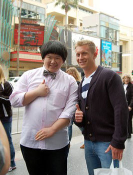 中新網(wǎng)4月23日電 據(jù)“中央社”報(bào)道,臺“小胖”林育群23日前往洛杉磯好萊塢星光大道朝圣,因?yàn)榫W(wǎng)絡(luò)上的高點(diǎn)擊率與脫口秀節(jié)目的訪問,小胖一路上頻頻被路人認(rèn)出,還有老外call out,當(dāng)場電話連線。