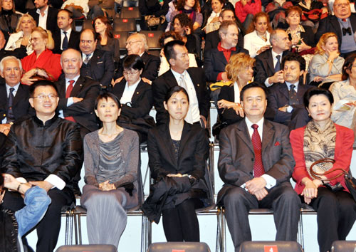 中新網(wǎng)6月24日電 臺(tái)灣著名現(xiàn)代舞蹈表演團(tuán)體云門舞集于當(dāng)?shù)貢r(shí)間22日晚在羅馬郊區(qū)舉辦首場(chǎng)演出,擔(dān)任榮譽(yù)團(tuán)長(zhǎng)的馬英九夫人周美青盛裝出席,女兒馬唯中也專程飛來意大利觀賞表演,兩人成為會(huì)場(chǎng)中最引人注目的嘉賓。