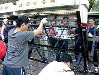 據(jù)臺(tái)灣東森新聞報(bào)道,一大早高雄“高分院”工作人員忙著在法院周邊圍墻外架設(shè)一道道路障,高雄“高分院”看起來就像是座落在銅墻鐵壁當(dāng)中,而這是為了因應(yīng)16日高雄市長選舉官司二審即將宣判,高雄“高分院”為預(yù)防有心人士鬧場所采取的預(yù)防措施。