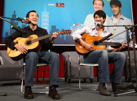 據(jù)“中央社”報(bào)道,馬英九穿著牛仔褲和Polo衫和王力宏合唱英文歌曲《I Understand》。馬英九說(shuō),這是他高三時(shí)花了一百七十多元買的吉他,練的第一首歌曲。王力宏則從未聽過(guò)此曲,他笑著說(shuō),先前還熱心找了一些“老歌”,沒想到在馬英九眼里全是“新歌”。
