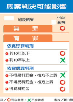 報道說,依臺“總統(tǒng)、副總統(tǒng)選舉罷免法”規(guī)定,馬英九二審若維持無罪判決,或被依貪污罪判刑十年以下,都不影響參選“總統(tǒng)”資格。