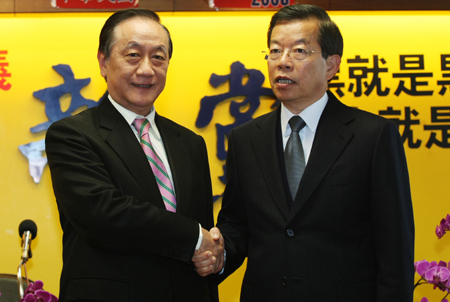 民進(jìn)黨2008參選人謝長(zhǎng)廷今天拜會(huì)新黨主席郁慕明,再度宣稱組“大聯(lián)合政府”,要共生共治;郁慕明則說,對(duì)新黨而言,共生優(yōu)于共治,會(huì)繼續(xù)維持藍(lán)營(yíng)監(jiān)督者角色。