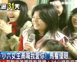 報道稱,這名名叫陳琳璦的小女生高喊“我愛你”,連身經(jīng)百戰(zhàn)的馬英九也“凍不住”了,愣在那里,手中的麥克風(fēng)拿起來又放下,連話都說不出來,這個時候小女生竟然哭了。馬英九忙說:“不要哭,不要哭,我也愛你!