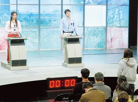馬英九與謝長廷首場電視辯論會將于今天登場,主辦單位昨天排練民眾提問時,特地在左邊位置準(zhǔn)備小木板給謝長廷,讓其與馬英九高度相當(dāng)。(圖:臺灣《中國時報》)