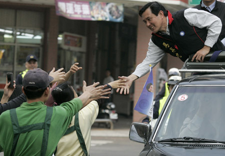 據(jù)臺(tái)灣媒體報(bào)道,馬英九陣營除規(guī)劃在臺(tái)北縣、臺(tái)南縣舉辦10萬人大型造勢活動(dòng)外,也將視對(duì)手造勢規(guī)模,彈性擴(kuò)大造勢活動(dòng)。馬陣營一名幕僚表示,艱困選區(qū)如嘉義縣市和臺(tái)南縣市,仍將是最后階段的拜票重點(diǎn)。馬英九競選副手蕭萬長打算與馬英九互補(bǔ),密集拜會(huì)中南部本土企業(yè)與當(dāng)?shù)厥思潱瑩尮ゾG營票倉。