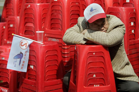 臺北的馬英九、謝長廷兩位競選人總部,巨大的競選招貼懸掛依舊,樓內(nèi)卻門可羅雀,不見往年選舉時人流絡(luò)繹不絕、人頭攢動的場面。馬英九的總部門口沒有插任何競選旗幟,謝長廷的總部兩側(cè)倒是插了一些旗幟、放置了一些政策宣傳看板,只是不見上屆選舉時民進黨候選人總部前旗海飄揚的熱烈景象。