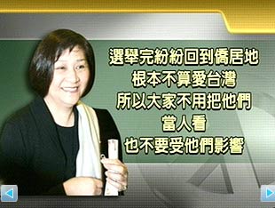 不過,這兩人的說法都不被馬陣營(yíng)所接受。馬陣營(yíng)發(fā)言人蔡詩(shī)萍表示,從來都不認(rèn)為挺綠、支持民進(jìn)黨候選人謝長(zhǎng)廷的人不是臺(tái)灣人,也不會(huì)拿挺綠的藝人來消費(fèi),但今天要為挺藍(lán)的藝人說句公道話,挺藍(lán)藝人絕對(duì)不是如江霞、葉菊蘭所說的“不是臺(tái)灣人”。