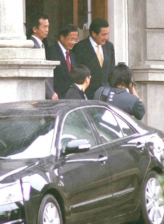 會(huì)談結(jié)束后,陳水扁親自到門(mén)口送馬英九搭車(chē)離去。(圖片來(lái)源:“中央社)